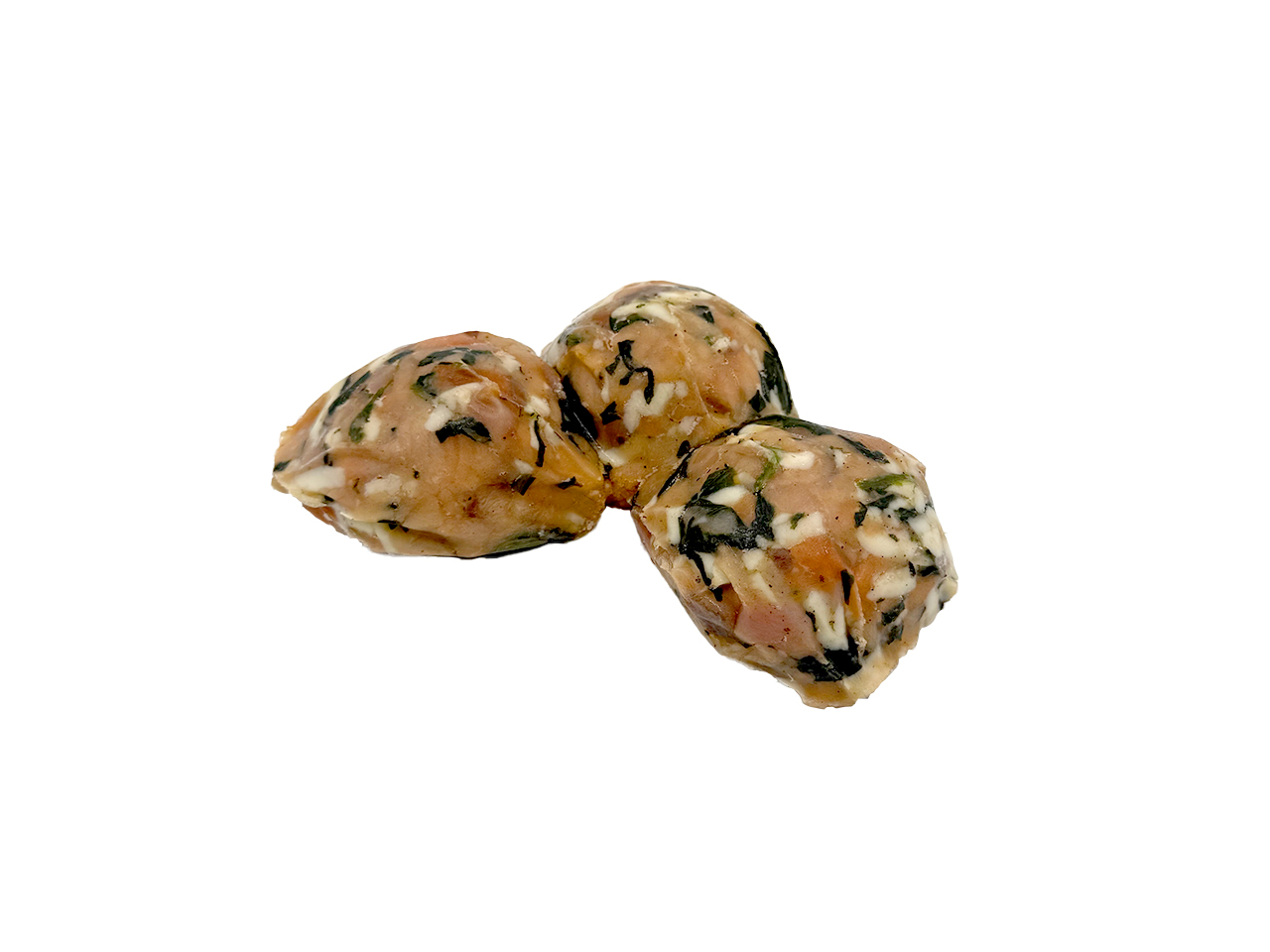 Фишбол приготовлен из морской форели со шпинатом, которые в сочетании подчеркивают вкус друг друга, что делает блюдо невероятно вкусным, а благодаря сливочному маслу и сыру
